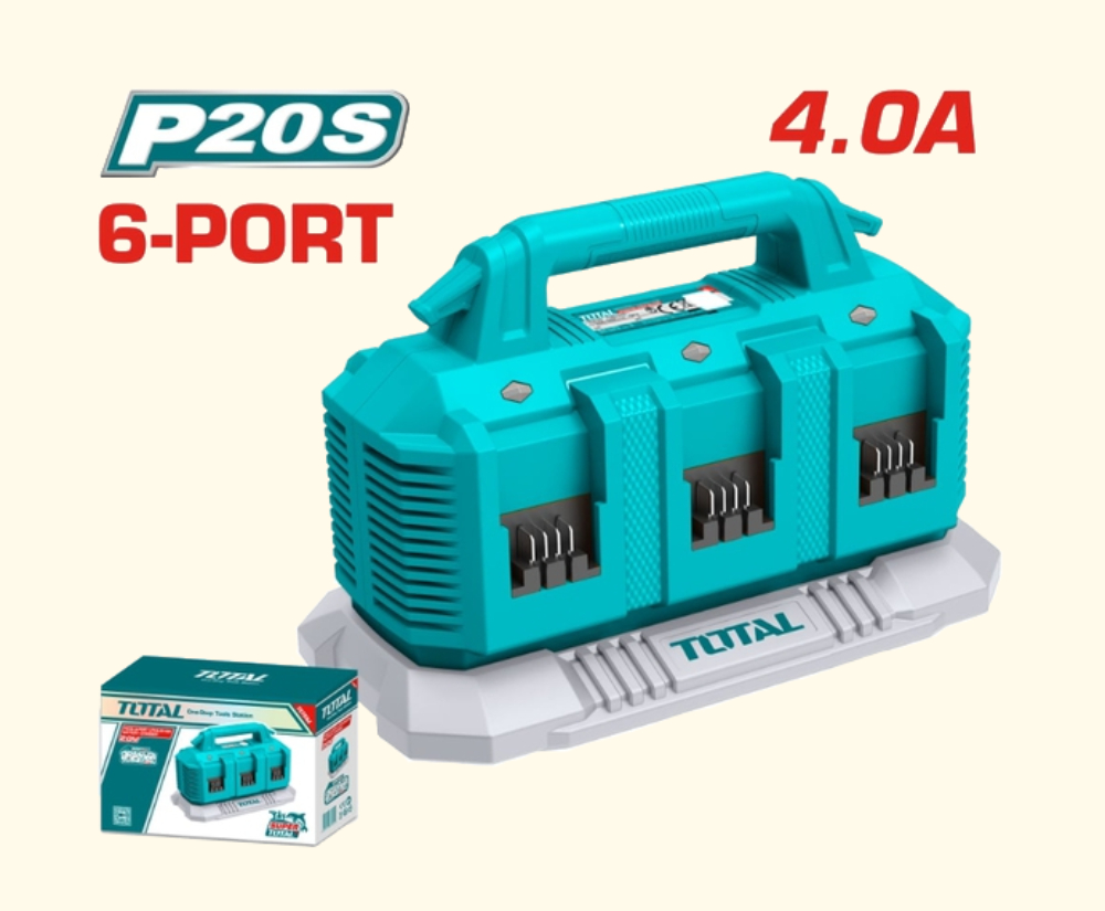 აკუმულატორის დამტენი 20V, 4ა/ს, 6 პორტი