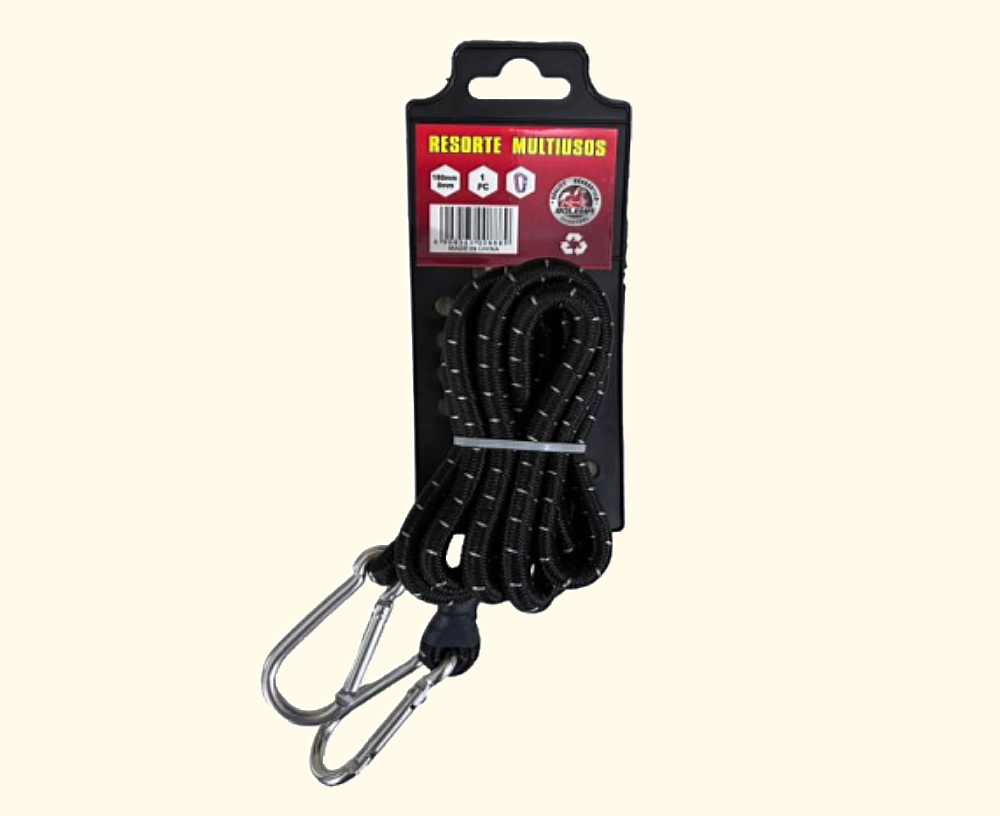 ელასტიური ბირთვი უზრუნველყოფს მოქნილობას და დაჭიმვის შესაძლებლობას, ხოლო მეტალის კარაბინები უზრუნველყოფს სწრაფ და უსაფრთხო დამაგრებას.