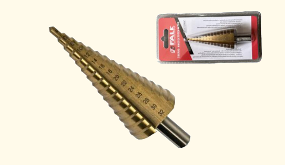 კონუსური ფორმა და საფეხურები საშუალებას გაძლევთ ეტაპობრივად გაზარდოთ ხვრელის ზომა ზედმეტი ინსტრუმენტების გარეშე.