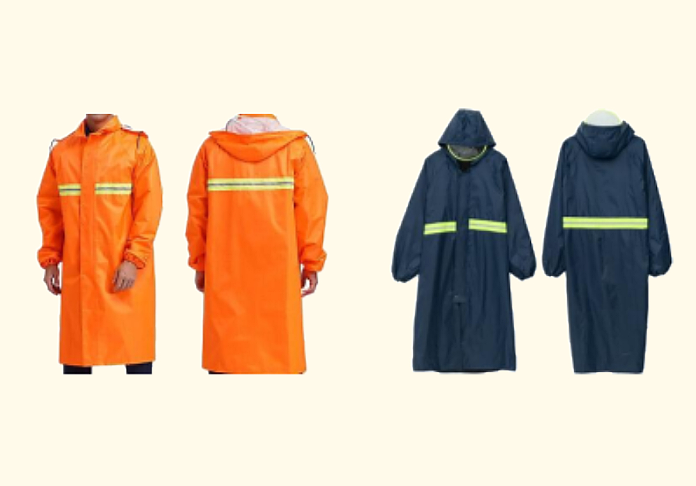 წყალგაუმტარი საწვიმარი ლაბადა, ხელმისაწვდომია ნარინჯისფერ და ლურჯ ფერებში