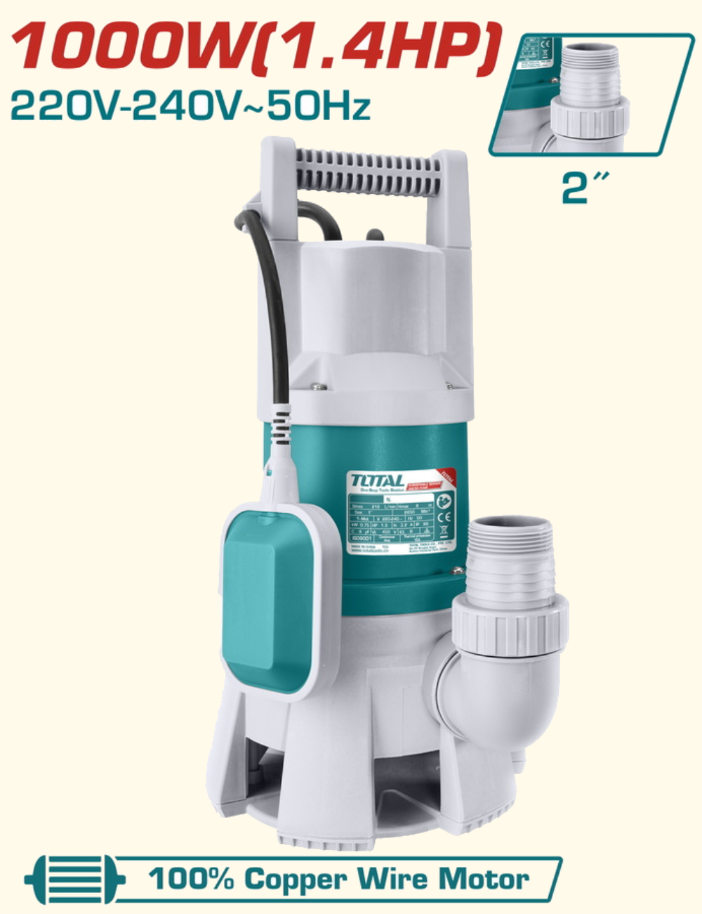 წყლის ჩასაყვინთი ტუმბო H=9მ, 1000ვტ